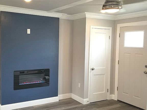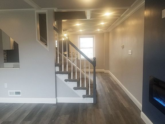 Porch front townhome finished in modern luxury. Enter the living room & you're immediately impressed with crown moldings, coffered ceilings, & contemporary design. The stylish built in fireplace has color changing flames to suit your desire. The coffered ceilings & ornate trim continue to the open kitchen & dining room with recessed lighting & teardrop lights over the breakfast bar. Enjoy stainless appliances, quarts counters, & custom tile backsplash finishing the space. The lower level is finished as the owner's suite with a spacious bedroom. The primary's bath has built in storage, tile floors, & tiled shower with hexagonal accent tile. Upstairs you find 2 more spacious bedrooms with new carpeting & a 2nd built in fireplace. The 2nd bath has a tub/shower combo finished in white tile with contrasting accent tile. Have peace of mind with a brand new HVAC system too. Many home buyer grants are available in this community help make ownership of easily affordable!