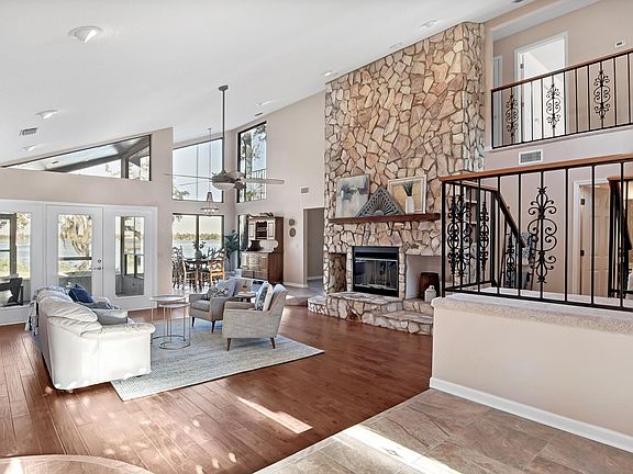 Peace and tranquility await on Deerpoint Lake. Enjoy a dock and boathouse in your own backyard! Lots of space for living, work and play with 3 bedrooms, 2.5 baths, an office, interior workshop and spectacular lake views from almost every room. The floor to ceiling windows and rustic stone fireplace create a warm and inviting welcome. Flooring in the Living Room and Master Bedroom is handscraped Versini Hardwood Cosenza Eucalyptus Baja. The Kitchen offers ample cabinet space, a large walk-in pantry, breakfast bar and nook, as well as picturesque views for the cook and all who gather. Entertain in the formal Dining Room, and everyone will feel they are dining in nature. The Master Suite is it's own oasis with plenty of natural light, a cozy sitting area and access to the screened porch. -->