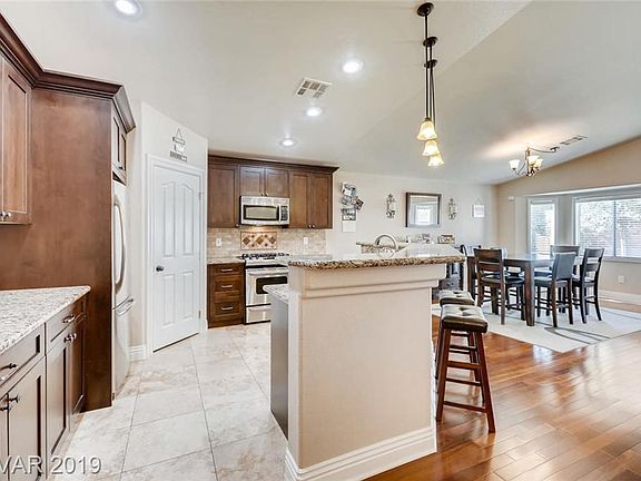 PRICED TO SELL!!! Immaculate single story home in gated Aliante community. This beautiful property features lush curb appeal with established desert terrain that flows into the backyard featuring a large covered patio. This home has four large bedrooms w ceiling fans, built in cabinetry in the garage, spacious great room w/ fireplace, Kitchen w/ island & breakfast bar. Brazilian teak flooring. 3 car garage!