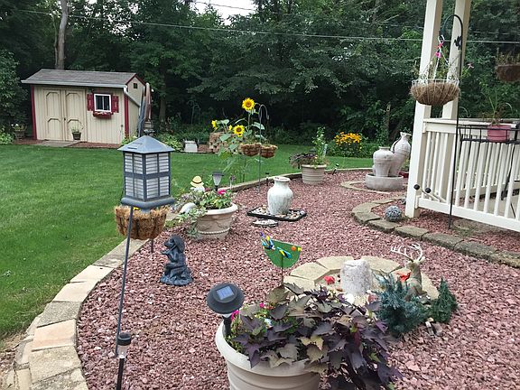 Eat-in kitchen, all appliances included, stove, refrigerator, microwave, washer, dryer, Iron Curtain, water softener, Extra Furnace in garage, refrigerator in garage included, cabinets in garage for storage, electric in gazebo with fan, utility shed with skylight. Ceramic floors in bathrooms and foyer, hardwood floors in bedrooms, carpeting in LV and Fam rm. Oak woodwork throughout, oak built-in bookcase, Oak cabinets in kitchen, corian countertops in kitchen, granite countertop in bathroom, solar tubes in Fam. Rm. and 1 bedroom for extra light, all window treatments included, Vertical blinds in Living room, tilt-in Windows for easy cleaning. Raindrop gutter guards in gutters on house and shed. 2 rain barrels, Beautifully landscaped yard.