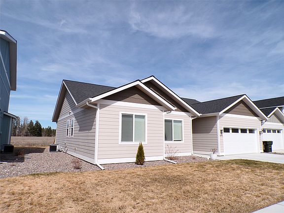 Imagine the feeling of coming home to this gorgeous rancher! Like-new with unparalleled comfort and amenities in this price range. Light +bright inside with nearly 1,700 sq ft all on one level with distinctive features including an inviting front entry with decorator display shelf plus space for a bench or hutch, luxury vinyl-plank flooring throughout, corner gas fireplace in the living room, gas forced air heat and air conditioning. Kitchens are a desirable amenity, and the large island, walk-in pantry and ample cabinetry with soft-close drawers make this home the best in class. Striking leathered granite counter tops and stainless-steel appliances with gas range. Spacious primary suite with vaulted ceiling, walk-in closet with built-in shelving, and private bathroom with double vanity. Mountain views, paved driveway, patio and landscaping with underground sprinklers. Call Teri Bjornrud (406) 261-6809 or your real estate professional. See supplement There are parks with playground, basketball court, pickleball/tennis court and open space with walking paths in the Trumbull Creek Crossing community. Enjoy the central location making it easy to visit all things the Flathead Valley has to offer year-round (lakes, woods, Glacier Park, ski resorts and more!). 500 year flood zone, flood insurance is not required. This is a relocation sale so please provide extra time for acceptance of offer. Property is being sold thru NEI Global Relocation Company and NEI Global Relocation Company should be listed as the seller. **See documents for NEI Global Relocation inspections, addendums and disclosures to be signed by Buyers with any offer submission. Buyers will be required to provide proof of funds, and a pre-qualification letter if they are obtaining financing. Information provided is from sources deemed to be reliable & accurate but not warranted by listing agent/office. It is subject to change without notice. All prospective purchasers & agents should check for the accuracy of all statements contained herein to their own satisfaction.