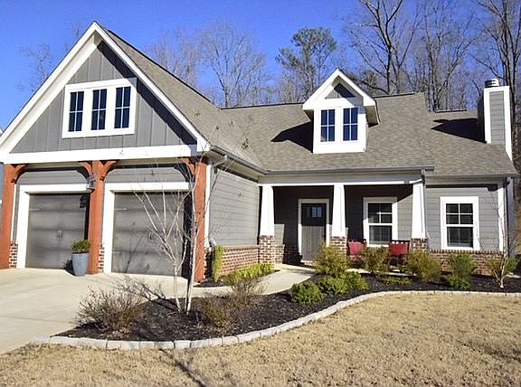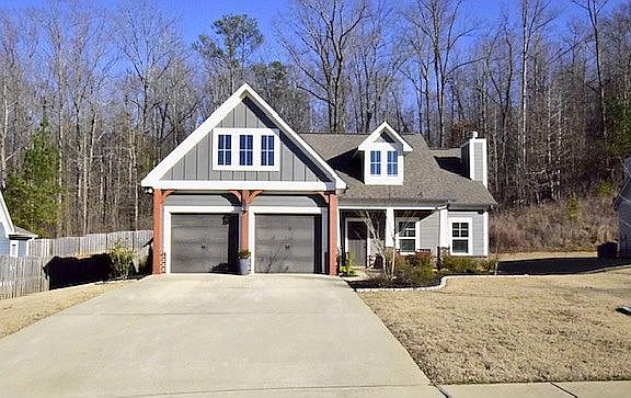 Feel right at home in this craftsman style, open-concept home with 3 spacious bedrooms, 2 baths, huge great room with cathedral ceiling and cozy fireplace. The split bedroom layout with master having separate tiled shower and garden tub, double vanity, a LARGE walk-in closet, tiled floors in all bathrooms and laundry room. Granite, backsplash in kitchen. Hardwoods throughout entire home. Sprinkler system throughout entire yard. The home backs up to wonderful private woods nestled in the back of the family-friendly neighborhood of The Arbors.