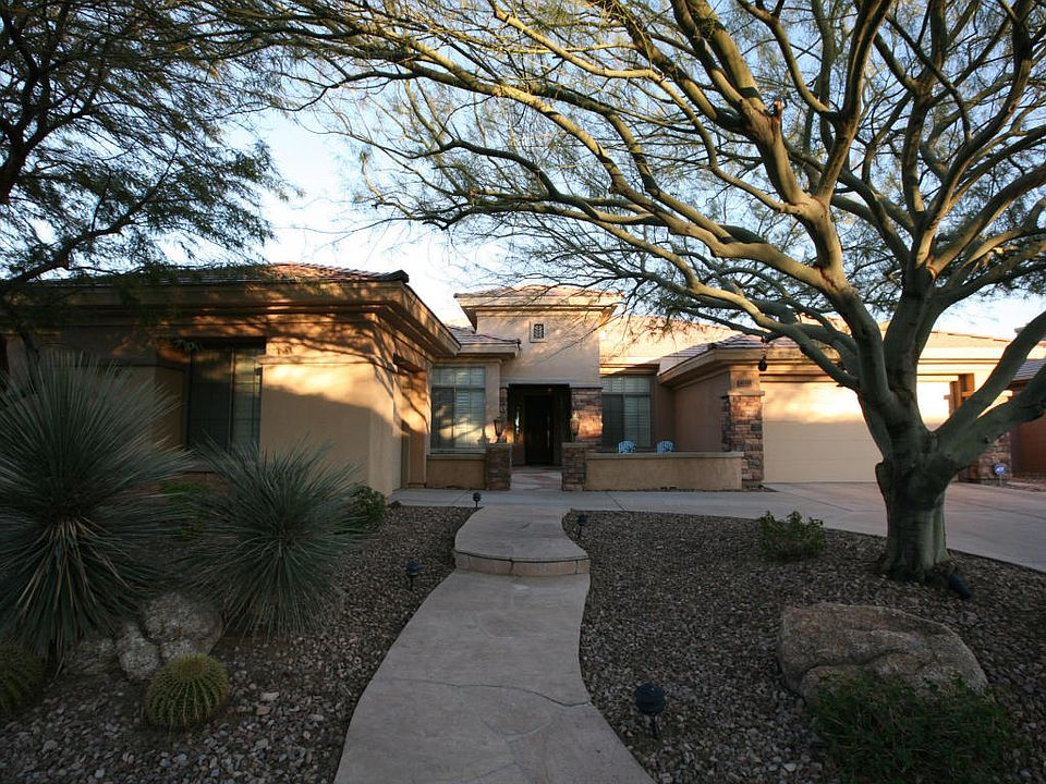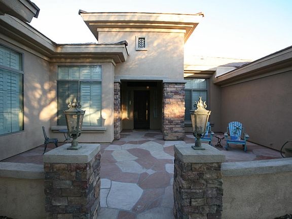 A MUST SEE! Beautiful 4 bedroom 3 1/2 bath in the Anthem Country Club golf course community. Wonderful features include a three car garage, office with gorgeous built-in desk, white shutters throughout, snail shower and garden tub in master, granite countertops, built-in fridge, and a guest/mother-in law room with ensuite bath. Perfect backyard for entertaining that includes a large patio, built in grill, gas fire pit with raised seating, and a view of the mountains over the back fence. New quiet garage door opener, both air conditioning compressors replaced within the last two years. Community includes 2 golf courses, two clubhouses each with a restaurant, gym, pool, and spa services. This is the home for you! We look forward to seeing you!!