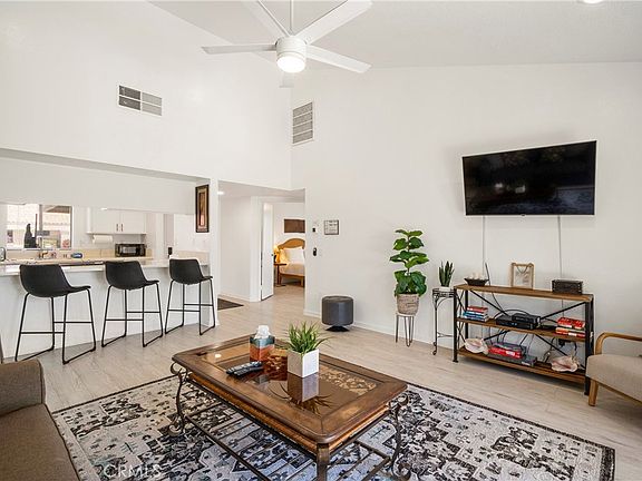 Step inside to discover upgraded flooring and a modern kitchen featuring an open breakfast counter, perfect for casual dining and entertaining. With vaulted ceilings and abundant natural light, the space feels bright, airy, and inviting.