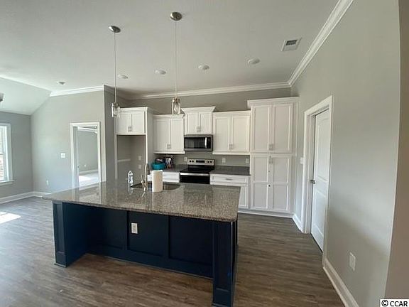 All brick 4 bedroom/3 bath home located on a large home site in the desirable Aynor School District. This top-selling home plan features a spacious great room, 10’ coffered ceilings, fireplace, granite island kitchen, large bedrooms, multiple storage closets, laminate wood flooring, screened in back porch, and a sprawling rear lawn. In addition to the granite counter tops, this upgraded kitchen features all stainless appliances, all wood 5-piece cabinetry with soft close dove-tailed drawers and doors. Enjoy your meals at the spacious island, breakfast nook, or the formal dining room which features two-piece chair rail and wainscoting, and an 11’ crowned tray ceiling. The large master bedroom and bath features a garden soaking tub, over-sized shower, high-quality brass body delta valves and faucets, granite vanity tops, double sinks, and two enormous master walk-in closets. Exterior features include a carriage style automatic garage door with glass window for natural light, quiet belt drive garage door opener, and maintenance free vinyl shake gables and dormers, brick soldier course and quoined corners, over-sized concrete drive, entry sidewalk, screened rear porch and more! Call today to view this lovely home!