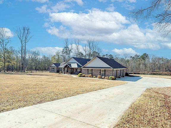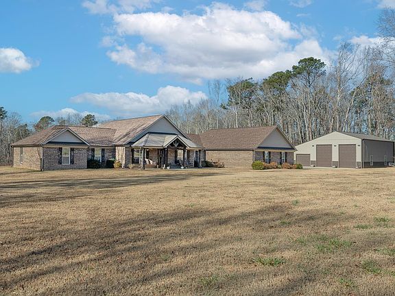 Beautiful one-level ranch home situated on nearly 16 acres along highly desirable Greenpond Road. As you drive down the long paved driveway—framed by brick columns and a custom gate—you’ll pass a wide open field perfect for horses, cows, or any outdoor hobbies your heart desires. Approaching the main home, you’ll appreciate the expansive parking area ideal for gathering friends and family. The main residence features an oversized 3-car garage, and just across the driveway sits a 3-bay barn/garage with high ceilings, ample lighting, RV hookup, and its own dedicated septic system. With power and plumbing already in place, this structure offers endless possibilities for customization. A long sidewalk leads to the spacious covered front porch. Inside, the large foyer sets the tone for this thoughtfully designed home, where comfort and generous space are prioritized throughout. Off the foyer, double glass doors open to a sizable office, and across the hall is the formal dining room with convenient access to the expansive living room. The living area boasts vaulted ceilings, a wood-burning brick fireplace, and a seamless flow into the entertainer’s kitchen—complete with abundant granite counter space, bar seating, ample cabinetry, stainless steel appliances, a decorative vent hood, and a large walk-in pantry. The owners suite is privately tucked into its own wing of the home and features custom wood paneling, recessed lighting, and a full bathroom with double sinks, tile flooring, and a large walk-in shower. Directly off the suite is an oversized laundry room for added convenience. The opposite side of the home offers three additional spacious bedrooms and a flexible bonus room perfect for crafts, a playroom, or anything you envision. Step outside after a long day and unwind on the large screened-in porch with hot tub, all overlooking the serene pond and the wildlife that frequently visits. An additional highlight is the included 7 acres—ideal for building another home, barn, or creating a multi-home family compound. This exceptional property truly has it all: single-level living, attached and detached garages for ample parking and storage, a pond, open fields, and room to grow. Come and make this beautiful house your home!