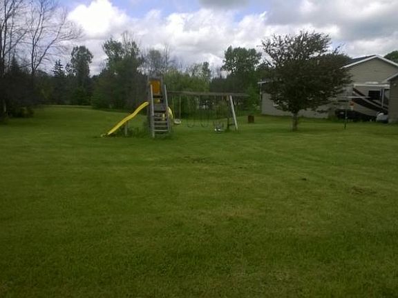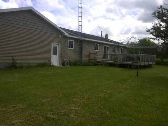 4 Bedroom, 1.5 bath vinyl sided home on 2.5 acres on the corner of Mills Rd. and Henderson Lake Rd. with 2 car attached garage. Home is heated with gas forced air furnace. Also a 30'x52' detached garage with 12' tall doors. 2 doors are 10' wide and 1 is 12' wide. Also, 30' x 52' garage has a vehicle lift ideal for home mechanic business etc and is also insulated and heated with a used oil furnace. Home includes a 20'x 20' deck on rear of home and 12'x 16' deck on front of home. 28'x45' basement. vinyl siding on both home and garage.