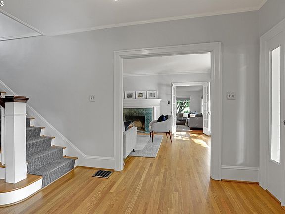 Gorgeous, truly elegant home in ideal Laurelhurst location. Graciously appointed above the quiet street and surrounded by sun-dappled trees, this traditional-style house lives beautifully. Large windows throughout provide tons of natural light all year long. Open staircase, two levels of gorgeous hardwood floors and tasteful designer-kissed touches around every corner. Beautifully remodeled open kitchen and dining room create togetherness and connection, along with perfect entertaining spaces throughout entire main floor. The formal living room with fireplace flows seamlessly to everyone's favorite room for its flexibility and fun. Perfect TV and/or family room, but can still be used as an ideal office, bedroom, or main-level guest room with wonderful ensuite bathroom w/skylight (potential ADU (?). Upstairs you will find three wonderful bedrooms (huge primary w/double closets & room for 2nd bath), charming and large period bathroom, and an elegant, light-filled landing. Semi-finished basement provides perfectly livable playrooms, bonus rooms, storage, workshop, and studio space or office, along with a half bath and laundry. Please ask to see ideal floorplan and impressive "Updates & Highlights" list to see all the newer systems and upgrades. Energy Score of 5! Don't miss the surprisingly large fenced and private yard (perfect for kids, pets and play) or the sunny patio (perfect for entertaining & raised garden beds). Bigger attached garage for parking and storage and your own private driveway. Quiet, sweet Laurelhurst location, yet still within minutes to coveted schools, parks, cafes, restaurant and shopping. Walk Score 84 and Bikes Score 94! [Home Energy Score = 5. HES Report at https://rpt.greenbuildingregistry.com/hes/OR10218750]