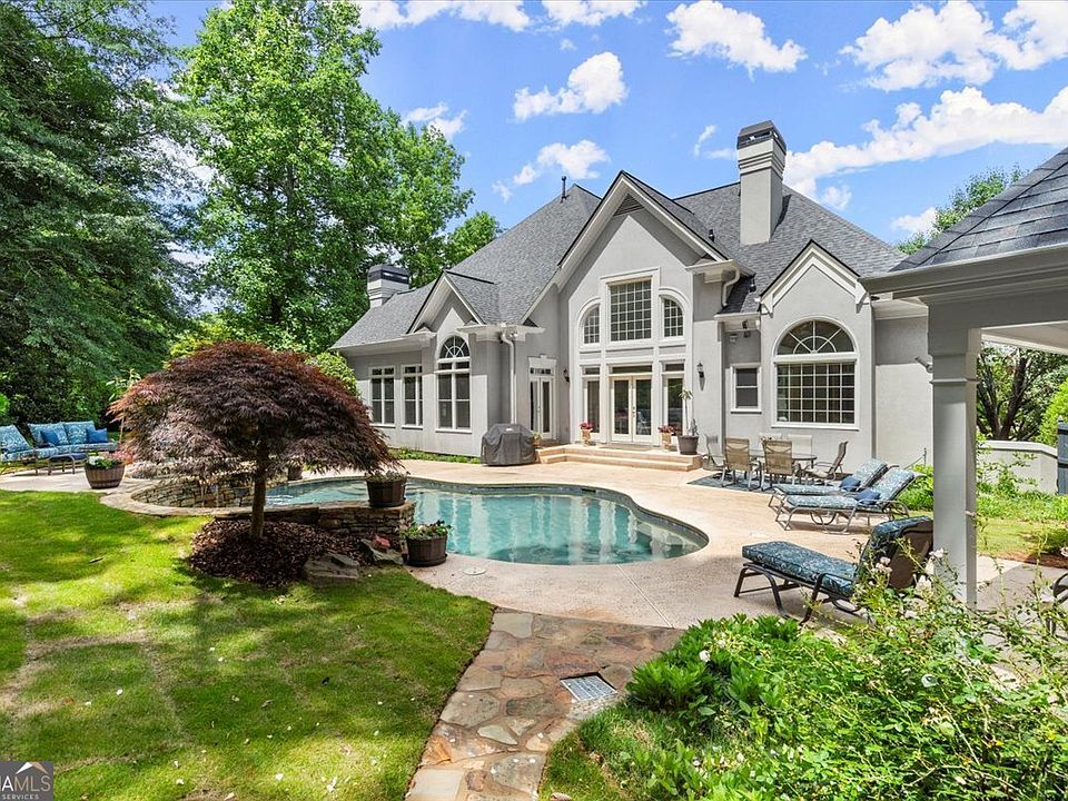 Welcome to this stunning custom-built home in the prestigious Wellington Lake community of Peachtree Corners! From the moment you step inside the inviting foyer, you're greeted by breathtaking views of the saltwater pool and feature waterfall, setting the stage for luxury living. This Cowart-built home features unique architectural designs, elevating every room with elegance. The attention to detail and meticulous maintenance of this home are evident from the moment you arrive. The heart of the home is the Great Room, offering seamless flow into the backyard retreat. Natural light floods the kitchen, which overlooks a breakfast area and fabulous Keeping Room with a gas log fireplace and soaring ceilings adorned with exposed white beams, creating a cozy atmosphere for gatherings. The main floor Owner's Suite is a retreat in itself, featuring a spacious bath with dual vanities, a jetted tub, and a shower with two shower heads. Plus his & her custom closets. The barrel ceiling with cove lighting adds a touch of luxury to this private sanctuary. A formal dining, butler pantry, elegant half bath & Front office/workout area complete the main level. Upstairs, you'll find a loft area and three large bedrooms, each with its own spacious bathroom and walk-in closet, providing ample space for family members or guests. The Terrace Level offers even more living space, with a Media Room, Built in Bar/Pub, Game Room, an office with outside access and a Full Bathroom. Plus, there's plenty of unfinished space for storage. Outside, the fenced backyard is a true paradise, featuring a gorgeous pebble-coated gunite saltwater pool with feature waterfalls. A pool house with a mini-fridge, updated half bath, and storage area - Supreme outdoor living! The entire backyard recently underwent a complete landscaping renovation. With new windows, a new roof, refinished hardwood floors, fresh paint, and completely re-landscaped grounds, this home is truly turn-key. Enjoy the vibrant community of Wellington Lake, with its active swim and tennis amenities. Conveniently located just minutes from Town Center and all its events and The Forum offering excellent shopping and dining options. Don't miss the opportunity to experience luxury living in Peachtree Corners - schedule your showing today!