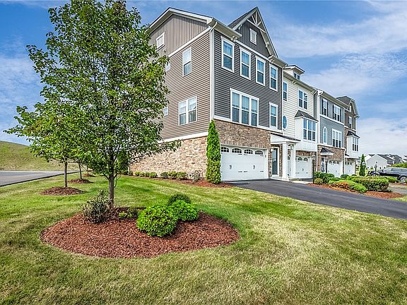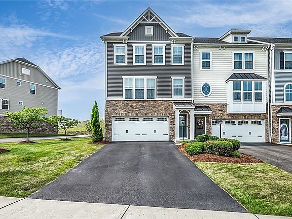 Welcome to 4034 Overview! This end-unit townhome is situated on a spacious corner lot just beyond the traffic circle & enjoys the privilege of limited traffic, granting you serenity amidst the hustle & bustle. It is complemented by community parking right across the street - a convenient prospect for guests. This 2017 build boasts many premium features, including an expanded Trex deck-perfect for al fresco gatherings, gleaming hardwoods, included appliances & custom Levolor shades. The main level features an open concept, complete with an island, pantry, and a convenient powder room. Upstairs there is a sizable master, a tranquil master bath, along with two other bedrooms, an additional full bath, & convenient upstairs laundry. A partially finished game room offers the flexibility to create your ideal space & walks out to an exposed aggregate patio. Mere minutes away from I-79, Embrace a low-maintenance lifestyle where the burdens of lawn work & snow removal are taken care of.