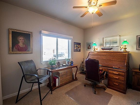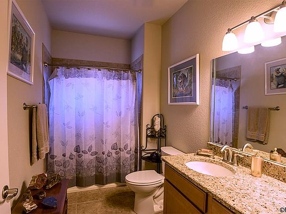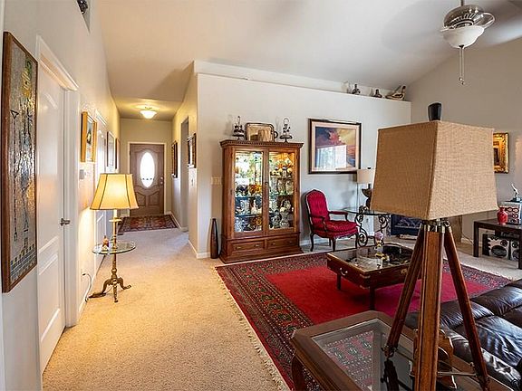 From front to back, this immaculate home has been impeccably cared for. It is handicap accessible w/ ADA height toilets, wide doors, shower grab bars, & an over-sized, step-in shower. You are greeted by an oval etched glass front door w/ high quality storm door w/movable screen.There are 9' ceilings throughout, & a cathedral ceiling w/ floating lighted plant shelf, & a gas fireplace in the living room. Ceiling fans, recessed lights & wood blinds! This perfect-in-every-way kitchen has granite countertops/breakfast bar/backsplash, Lazy Susans in each corner, Frigidaire, stainless steel appliances, maple cabinets w/ crown molding, & an etched-glass pantry door w/ built-in shelves. Laundry room has Whirlpool W/D. Bathrooms feature tile floor/shower/tub, & granite vanity tops. A partially covered, private concrete patio has an east-facing automatic sunscreen awning w/ remote & gives access to the back yard w/grass, xeriscape flowering shrubs & trees, all enclosed w/ a black wrought-iron fence. The over-sized garage offers extra storage w/ built-in shelving, workbench, lighted, easily-accessible mechanical room, & a second lighted closet w/ built-ins. Show this well-kept home today!