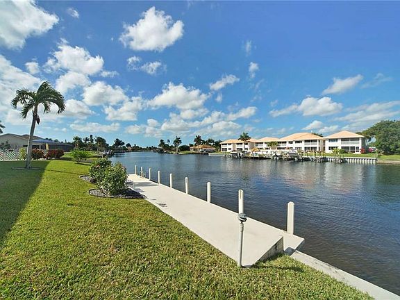 Opportunity is knocking to own this impeccable & spectacular Gulf access waterfront condo located on the wide Rubicon Canal. This unit offers sweeping and breathtaking water views & is so spacious with approx. 1380 sq feet of living area! Condo has a very desirable floor plan providing a light & bright feel, nice updates & features including new hurricane impact windows, large kitchen & bedrooms, walk in master closet, newer hot water heater, inside laundry, lovely coastal furnishing and décor, tile in kitchen & baths, recent interior paint & carpet, community boat dock & also has been re-plumbed. Enjoy the large, Community heated pool overlooking the intersecting canals where you may see occasional dolphins play! Fish your cares away or just relax and watch the sunset from this sought after westerly facing property. Features also include a bonus area (right off the kitchen as you enter) which is presently being used for dining space, but instead could offer den or office possibilities. Condo has covered parking & has convenient access by bike, foot or car to downtown Cape Coral shopping & restaurant district. Owner pride shows & move in ready..just bring your toothbrush!