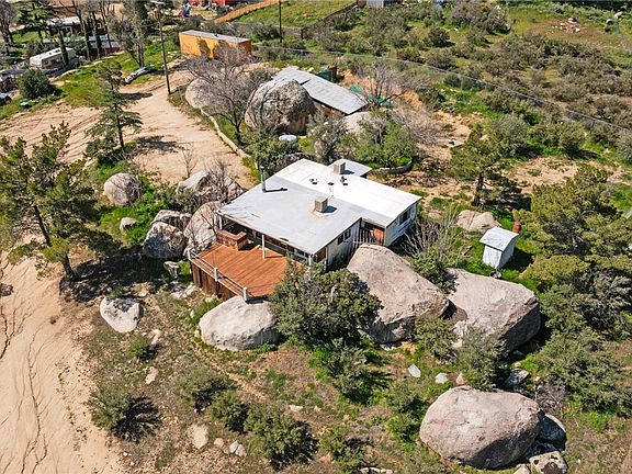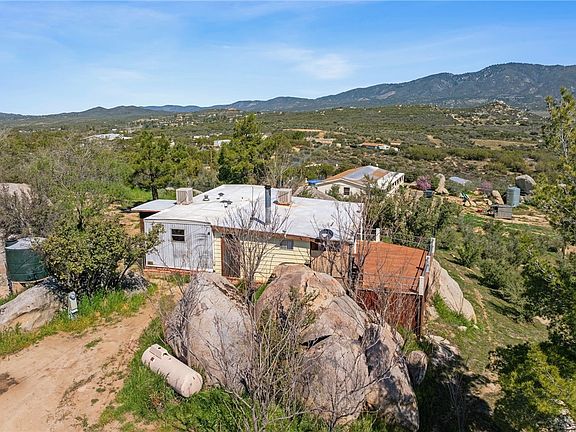OPTIONS GALORE! BUILD A NEW HOME, UPDATE THE CURRENT HOME! ENDLESS POTENTIAL ON THIS 2.5 ACRE VIEW PROPERTY! The main structure on the property has a spacious living room featuring a wood-burning pot-belly stove and access to a large deck, perfect for entertaining and catching beautiful sunsets. The kitchen is open to the dining room and off the kitchen is the hallway to the primary bedroom, and full bathroom. The property also includes a large storage container, shed, and unattached garage. Located a short distance off Hwy 371, with a short drive to town and Cahuilla Casino. Opportunity awaits! Schedule your private tour today!