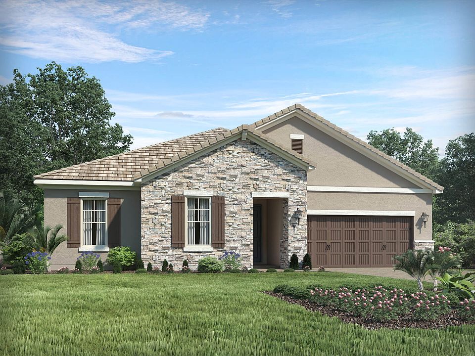 This home features an open great room and nook combination, covered lanai and master suite complete with his and her closets. Design features include quartz countertops and 12"x24" porcelain tile. The spacious backyard is perfect for a future pool.