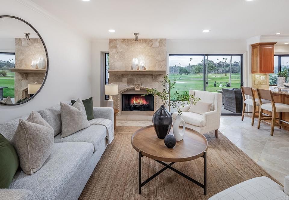 Live on the golf course of La Valle Coastal Club. Experience sweeping fairway & mountain views from this rarely available 3 bedroom golf course front home in The Villas of Whispering Palms. The inviting light-filled interiors offer multiple living spaces that flow seamlessly to the patio overlooking the greens, creating an ideal setting for relaxed mornings and effortless entertaining. The gourmet kitchen, complete with a view, features granite countertops, custom cabinetry, and built-in subzero refrigerator making cooking a delight. The expansive primary suite features soaring vaulted ceilings, a cozy fireplace, spa-like bathroom, large walk-in closet, and private balcony with views of the golf course and mountains, providing a serene retreat. Surrounded by resort-style amenities within The Villas as well as direct access to La Valle Coastal Club with golf, dining, pool, tennis, pickleball, and fitness facility, this is a unique opportunity to experience the best of Rancho Santa Fe living - All within close proximity to the beach and Del Mar. Experience the La Valle luxury lifestyle for yourself!