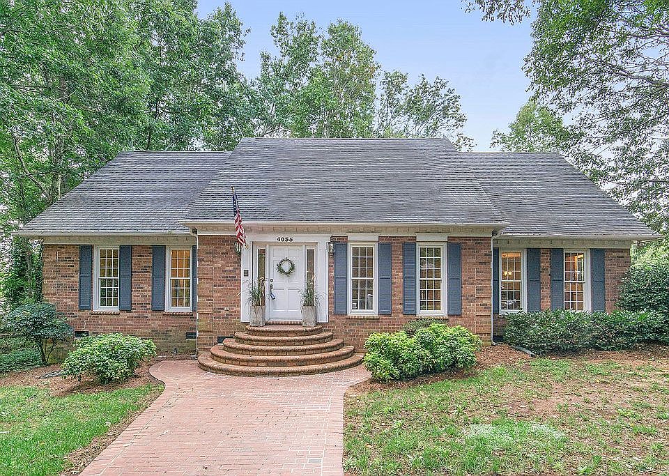 Classic, charming, comfortable yet stately. Over ½ acre wooded corner lot w/sweeping circle drive. Full brick exterior is softened by gentle blue shutters. Site-finished hardwoods, crown molding, floor-length windows, & custom built-ins. Huge kitchen w/quality cabinetry, island, & newer appliances incl gas cooktop. Kitchen conversations will turn to drinks in the living room & then an evening fire with friends on the patio. Main level master has "bonus" space perfect as office, gym, or just a quiet place to read. Roomy master bath w/separate vanity sinks, walk-in shower, impeccable tilework, & jetted garden tub for a relaxing bubble bath. Two master closets provide plenty of space! Versatile upstairs layout w/two walk-in attic storage spaces. Lovingly maintained & smartly updated w/fresh neutral paint, oil rubbed bronze fixtures, & more. Preston Forest is best of both worlds; large private lots & mature trees while still less than five minutes to I-485; easy to anywhere in Charlotte.