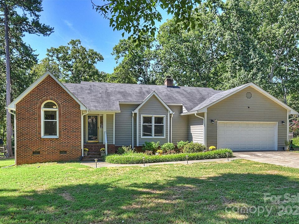 Incredible opportunity in Indian Trail! This well maintained single-story home features wood laminate floors throughout, updated kitchen with granite counters, stainless appliances, tile backsplash, lots of counter and storage space, and sunny breakfast room with vaulted ceiling overlooking scenic yard! This split bedroom floor plan offers great flexibility! Tray ceiling in dining room, spacious living room with wood burning fireplace, updated powder room, primary bedroom with tray ceiling, dual closets and spa bath featuring walk in shower and separate tub.