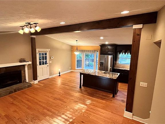 Split lower levelMulti-fuel fireplaceLarge rear deckOversized islandBarn-style farmhouse sinkAmple additional parkingBright and versatile den