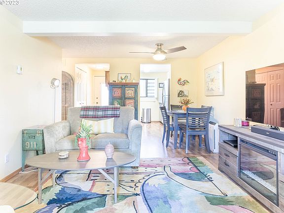 Super cute move-in ready condo situated in sought after Southeast Eugene! Desirable end unit with covered south facing deck that overlooks the courtyard & swimming pool with a stunning view of Spencer Butte. Newer stainless-steel appliances & stackable washer/dryer are included. Fresh interior paint, laminate flooring. New in 2019- water heater, appliances, refrigerator, garbage disposal, ceiling fans, toilet and faucets.Kitchen boasts beautiful leathered granite countertops. Fabulous condo community that offers a wonderful pool, 6 x 11 storage unit and rare conveniently located assigned parking space #20! HOA fee is $300 per month and covers -commons, exterior maintenance, grounds maintenance, management, pool & trash. Prime location! Edgewood shopping center is conveniently located right across the street - Safeway, Highlands Brew Pub, Lox, Stocks & Bagels, Edgewood Animal Clinic, Trailwood barbershop, Music Masters, Bo's Wine Depot, Direct Kick Soccer Shop, ReNA Fitness, Classic Touch Hair Design, Whole Earth Nature School & much more. Walk to Tugman Park, Tamarack Aquatic Center & Eugene Yoga. Only one mile to Market of Choice. The University of Oregon and downtown Eugene is only 3 ½ miles away! Only 1 ½ miles to Amazon Park/ Swimming Pool. Two bus lines. Near excellent 4J schools. Owner occupancy only. No long or short term rental allowed. Pets allowed!