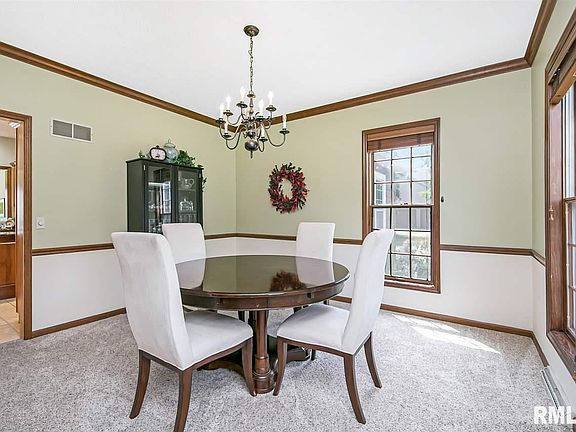 SPACIOUS 2-Story in desirable location! Over 4000 finished sq ft! Greet your guests in the lovely foyer boasting beautiful wood crown molding. Relax in the formal living room and celebrate in the formal dining room. Entertain in the huge kitchen boasting Granite counters, Island, breakfast bar, 2 ovens and an abundance of cabinets! Large vaulted eat-in kitchen is open to the family room w/brick gas log fireplace. Main floor laundry/mudroom w/utility sink hookup. Big 5th BR on main plus an updated 3/4 bath. Upstairs you'll find 4 more BR's: a lovely vaulted master suite complete with updated bathroom w/ dual sinks, skylight & a walk-in closet, big bedrooms & another updated bath. The finished basement offers you a wet bar kitchenette, rec room, fitness room plus storage! Storage is not an issue in this home! Step outside to enjoy the beautiful stone patio with wood burning stone fireplace, shed & fenced in yard. Bettendorf schools! Quick access to restaurants, shopping and I74/I80!