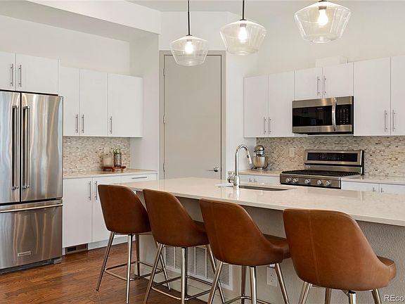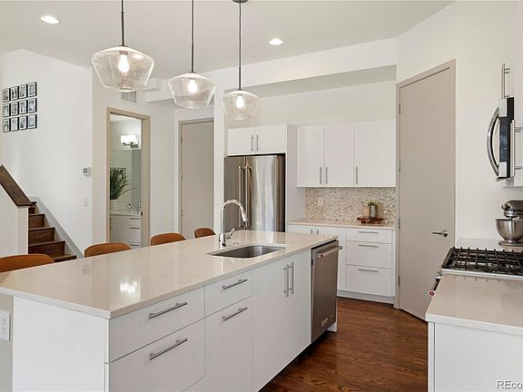 Welcome to 4035 Fenton Ct, a stunning home built in 2017 that seamlessly blends contemporary design with ultimate convenience. This rare single-family home offers a lock-and-leave lifestyle with plenty of space for entertaining—whether indoors, on the rooftop, or in the small private yard, perfect for dogs. Just a short walk away, Tennyson St. awaits with Michelin Guide restaurants, trendy shops, and serene parks and lakes. Only a block from the home, Randall Park serves as a neighborhood hotspot where residents gather to play fetch with their dogs, watch their children enjoy the playground, or have picnics with friends. Step inside to discover a spacious open floor plan with 10-foot ceilings and abundant natural light streaming through southern and western-facing windows. The gourmet kitchen is a chef’s dream, featuring a massive island, quartz countertops, stainless steel appliances, a gas range/oven, and walk-in pantry. Upstairs, three oversized bedrooms await, including a luxurious primary suite with a massive walk-in closet and a spa-like en-suite bathroom, complete with a standalone soaking tub, double vanity, and walk-in shower. The conveniently located laundry room is just steps from all bedrooms. Outdoor living is elevated with a 12' x 12' rooftop deck, offering breathtaking mountain views and a built-in gas grill. The side yard includes a dedicated dog run and a private relaxation area. The fully finished basement is the ultimate flex space, featuring a spacious media/TV area and a fourth bedroom—ideal for a home office, gym, or guest suite—complete with a walk-in closet and full bathroom. Parking is never an issue with an oversized two-car garage and two additional reserved spaces. Plus, the home is pre-wired for solar panels and designed for energy efficiency. This home offers the perfect blend of modern luxury, an unbeatable location, and maintenance-free living—a truly rare find in Wheat Ridge!