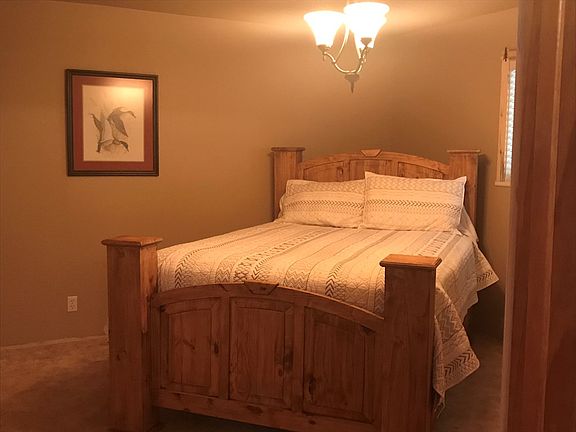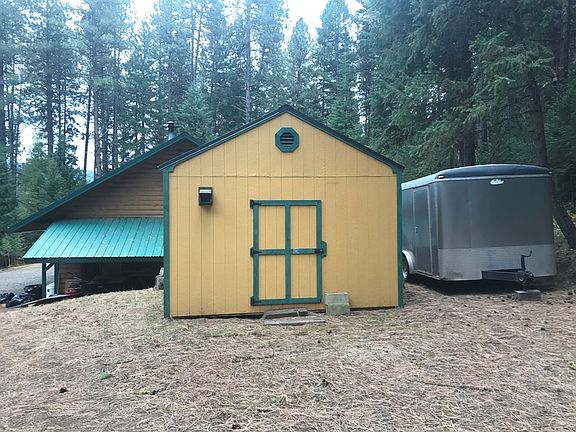 Cozy comfortable cabin in the woods. Very Clean and well maintained. Sits above Zim's Hot Springs. Pine doors and trim, wood, laminate and bamboo flooring. Newly fenced back yard. Way oversized garage with work bench. Lots of raspberry, blueberries, and blackberries to pick. 14 X16 shed. Some furniture and furnishings available under separate contract.