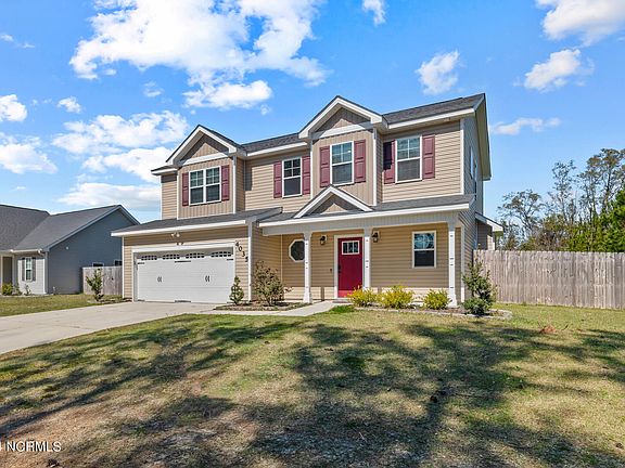 This beautiful home is located just a few minutes away from the Camp Lejeune Piney Green gate, offering you the perfect blend of comfort and convenience. The inviting covered front porch leads to a spacious entryway that opens up to a cozy living room with a fireplace for those chilly winter evenings.