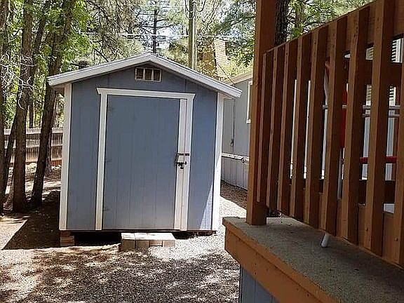 - Exterior Features: Deck - Covered, In the Trees, Utility Building, Street Paved, Tall Pines On Lot, Other Building