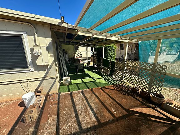 Covered patioShaded covered patioSoaring vaulted ceilingsClassic hawaiian charmFresh coat of paintAiry tropical oasis feelLight-filled interior