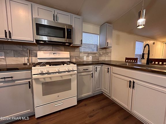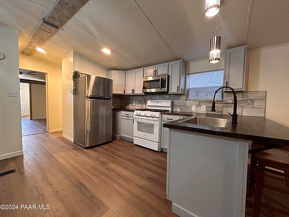 SELLER IS MOTIVATED! Plenty of opportunity in this home. One of the cheapest active homes in Prescott Valley on the market! Perfect Starter home or possible investment. This beautiful home features many upgrades and custom touches including fresh paint, new cabinets, new water resistant flooring, custom tiled showers, barn door entry to the master bath, a freestanding tub, double vanities, a newer Ac and heating unit and much more! Outside features a fenced backyard, new paint, a 66ft long covered carport and a paved driveway to the street. A workshop/shed in the backyard with electric makes for a great use for storage. Close to the Hospital, Parks, and Entertainment.So much more to this home in person, book a showing today!