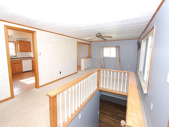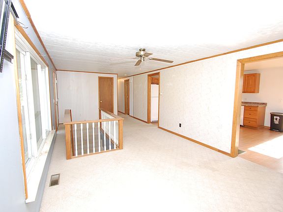Three bedroom, three bath home located just south of town. This is a raised ranch with partially finished basement. Recent paint and some newer flooring. Spacious kitchen with lots of cupboards and counter space. Master bedroom has private bathroom. Dining room has access to rear deck with great countryside views. Garage is a drive under. This 2 acre m/l property is a corner parcel ~ has mature shrubs and trees, but great space for flower beds and even vegetable garden. Has a small garden shed. Seller will look at offers.