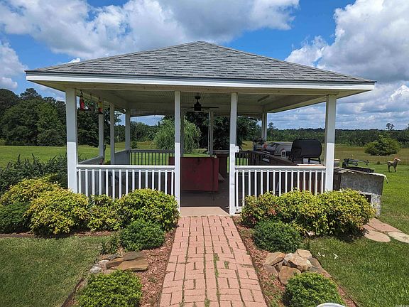 3 bedroom, 2 bath ranch style home with great curb appeal. The front porch area is beautifully landscaped at the entry of the home. The home sits on a huge lot of new oak trees, bradford pear, holly, apple trees and crepe myrtles on the front along the driveway. This 3.712 acre property is fully fenced. It has an apartment living area attached to shop, and additional parking. The bedrooms are amply sized with large closets. The family room is comfortable and open to the kitchen and breakfast area. Out back, you are greeted by a large porch with a swing and a sidewalk leading to the guest area. The gazebo out back has a built-in outdoor kitchen, and there is a fire pit area next to it.