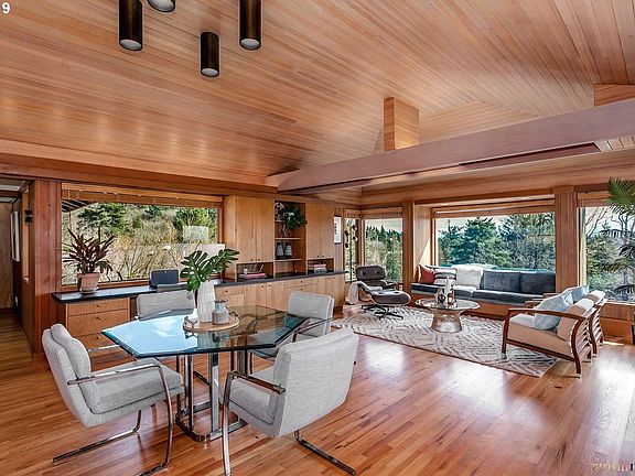 Perched in the West Hills with gorgeous sunset views, this exquisite mid century home is a stunning retreat. A rare find, meticulously designed and built by renowned Seattle architect. Hemlock & VG Fir millwork, spa-like master suite w/ custom closet on the main, dreamy kitchen w/ walk-in pantry. Lower office/studio has outside entrance and ADU potential. Huge level driveway. Enjoy neighborhood gatherings at the Montmore community pool. [Home Energy Score = 3. HES Report at https://rpt.greenbuildingregistry.com/hes/OR10086914]