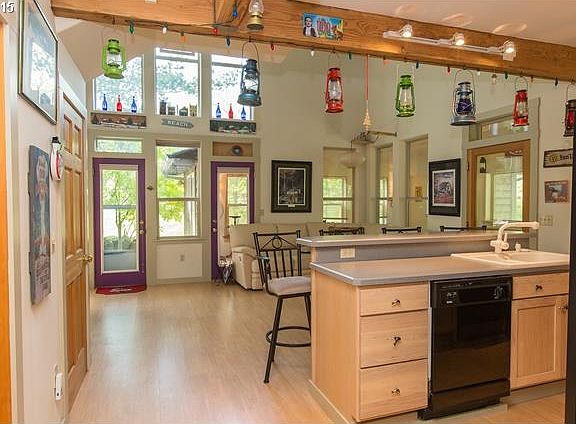 Bordering the common area of Stonegate's east side, this home is very welcoming. The kitchen has plenty of room w/ an island that seats many & is connected to the living space. 2 bedrooms, laundry/bath, & sunroom finish off the main level of this home Upstairs is a large master suite, with full bath and ample walk in closet. Blue pine ceilings & lots of windows lend charm to this unique home.