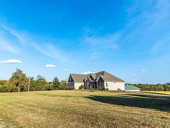 Custom-built 1,969 sq. ft. Schumacher ranch home built in 2016 offering 3bd/2ba and sitting on 2.5 acres. Open floor plan with cathedral ceilings offering large living and dining spaces not to mention the gourmet kitchen with an expansive island with quartz countertops and stainless steel appliances. Cuddle up to a cozy fireplace or relax in your outdoor living space with breathtaking views of the pond and pastures. Need more space, finish the 9 ft. poured full walk-out bsmt with rough-in for kitchen and bath. Let's not forget the 48x60 Walters barn with electric. This home is right out of a magazine and will not disappoint. Only 8 minutes from Choctaw Lake and centrally located close to Columbus, Hilliard, Urbana, London, Plain City. New Amazon is just around the corner!