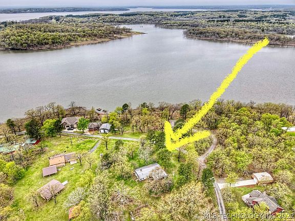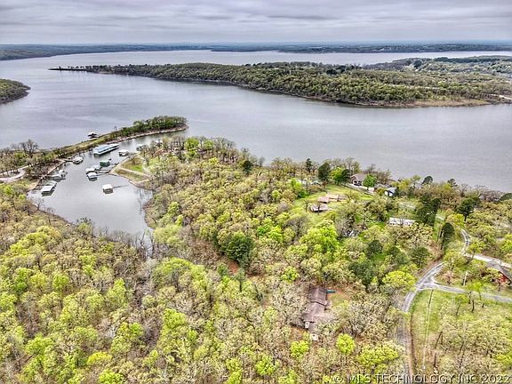 New Price! Looking for lake views with a dock? This large 2 acre lot in gated Cheroquoyah Club is perched up high with lovely views of Fort Gibson Lake! This is an exclusive, gated community along Hwy 80. Many happy memories were made here & property is ready for a fresh beginning. Home needs restoration, has cinderblock walls & slab to use or start from scratch & build your dream! Home is sold As Is. Private, covered 2 stall dock with electric is included in purchase. Convenient to Tulsa, Ft Smith, OKC & Dallas.
