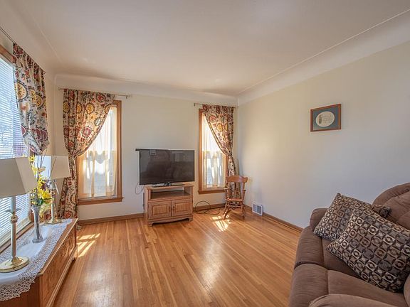 Darling Rambler located on a large fenced-in lot! Main level boasts glowing hardwood and tile floors, nice size living room, kitchen with breakfast nook, 2 bedrooms and a full bathroom. Partial finished basement with family room area for a second entertaining space. Step outside to the huge fenced-in backyard with tall mature trees, storage shed, and large patio! Plenty of outdoor space for pets, gardening area. Hurry, this one wonât last long!