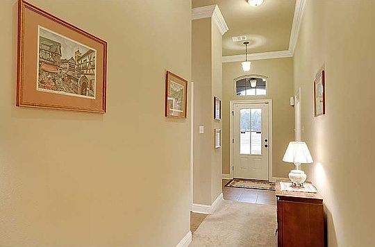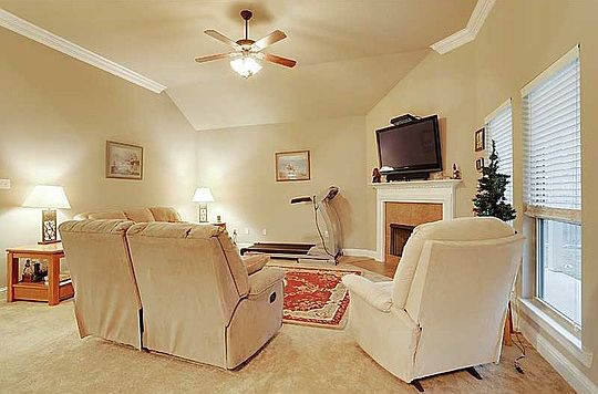 Relax on back patio overlooking pond. 3-yr-old home in excellent conditionw/everything already done for you! Custom blinds, completely sodded yard, wood fencing on 2 sides w/iron fencing for view of the pond. Ceiling fans in all bedrooms & living, gas fireplace, ss Frigidaire Gallery appliances including French door ref/frz, gutters, flooring in attic for extra storage,keypad for electric garage door opener, security system, 4 wall-mounted TVs