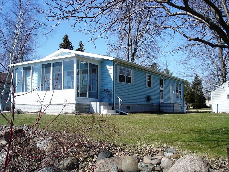 If you've been dreaming about an affordable lakefront year around home with a spectacular lakeview, look no further! This 2 bedroom, 2 bath immaculately maintained home offers a view of Lake Huron from the spacious open living room, kitchen, dining room and Sunroom! And if that's not enough, it also features natural gas, city water and city sewer, all the conveniences your used to at home! The 12 x 18 living room features cathedral ceilings, a ceiling fan, natural gas corner fireplace and a sliding glass door wall to the 7 x 17 three-season Sunroom. The adjacent 10 x 12 dining room and 11 x 11 kitchen are both open to the living room and also have a killer view of the lake so your sure not to lose sight of the children enjoying the water. Step into Sunroom and be prepared to literally catch your breath as you enjoy the panoramic view of Lake Huron. Down the hall, you'll find the large Master bedroom with walk-in closet, cathedral ceilings, ceiling fan, large windows and attached Master bath. A second large bedroom and full bath with stand up shower, make this the perfect home for having weekend guests or extended stays. The laundry room includes plenty of space for dirty shoes and winter coats and also features an exterior entryway for additional convienence. A convenient side entrance from the Sunroom will have you standing in the yard and only a few steps from the waters edge where you'll find a sandy beach walkout area and large boulders serving as a seawall. But that's not all! A 12 x 12 outbuilding can serve as a guest cottage with it's full bath or use it as a storage shed if you prefer or both. This complete turn-key home with all contents available won't last long with all it has to offer at an affordable price. Call today to schedule a viewing.