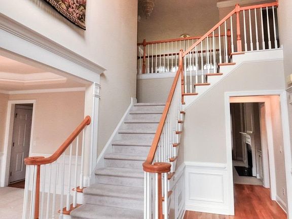 - Interior: 2-Story Foyer, Entrance Foyer, Trey Ceilings, Wall/Wall Carpet, 9 ft + Ceil Main, Disp Attic Stairs, His & Her Closets, Rear Stairs