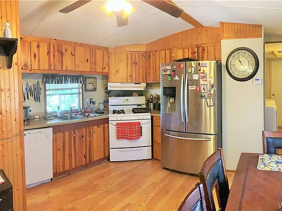 Amazing Perfectly Maintained 80's single wide, Excellent use of Space and Custom tongue-&-groove walls and ceiling, solid surface counter in the large front kitchen, split plan with super bedrooms at each end, semi-enclosed porch with covered patio and massive old oak tree that creates a garden-scape with extra yard, 2 large sheds, one with electric set up-completely fenced, 2 central cooling units, one evaporative-Sale includes 2 additional lots for planting 2 more homes, build a garage or whatever you choose.