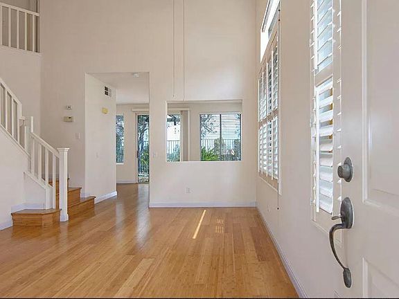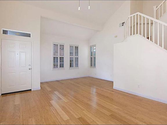Darling 3 Bedroom 2.5 bath single family home in the gated Ivey Ridge community located in Ivey Ranch! Spacious living room with vaulted ceilings and plantation shutters. Lots of windows, shows light and bright. Kitchen comes with stainless steel double oven range and new microwave. Features a fireplace in the family/dining room/eating area. Hardwood flooring and new carpet in the 3 upstairs bedrooms. New interior paint. Enjoy ocean breezes from your private backyard complete with Canyon views! Includes refrigerator, washer and dryer. 2 car garage with direct access to home. Parking in driveway for smaller vehicle. Guest parking only on one side of the street. No parking available for oversized trucks or work vehicles. Community features a pool, spa and tot lot. Walking distance to K-12 schools and parks! Please note that at this time, this property prefers no pets. Thank you.
