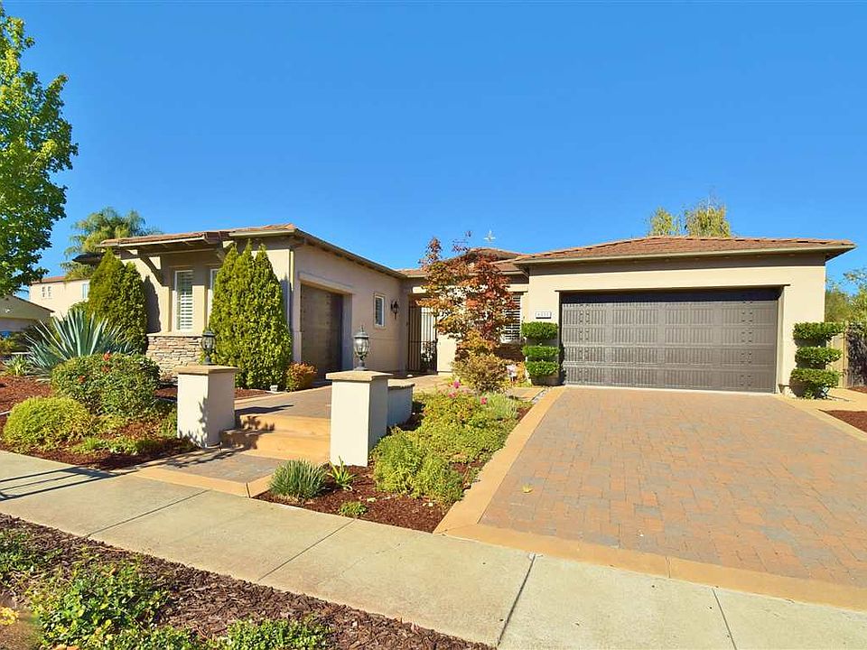 Stunning single level on .25 acer corner lot 2553 sqf. Charming gated front court yard, elegant living space with 3 bedroom 2.5 bath and 3 car garage included living room, family room, formal dining room and separate eating area by kitchen and family room. Gourmet kitchen with granite counters, large island, custom build in refrigerator, pantry, 5 burner gas stove with double oven. This home is a true entertainers delight with a spacious great room and kitchen combo. Fully landscaped yard with outdoor speakers, dining gazebo and tile patio. Short walk to huge beautiful park with tennis, community pool, playing fields and playground.