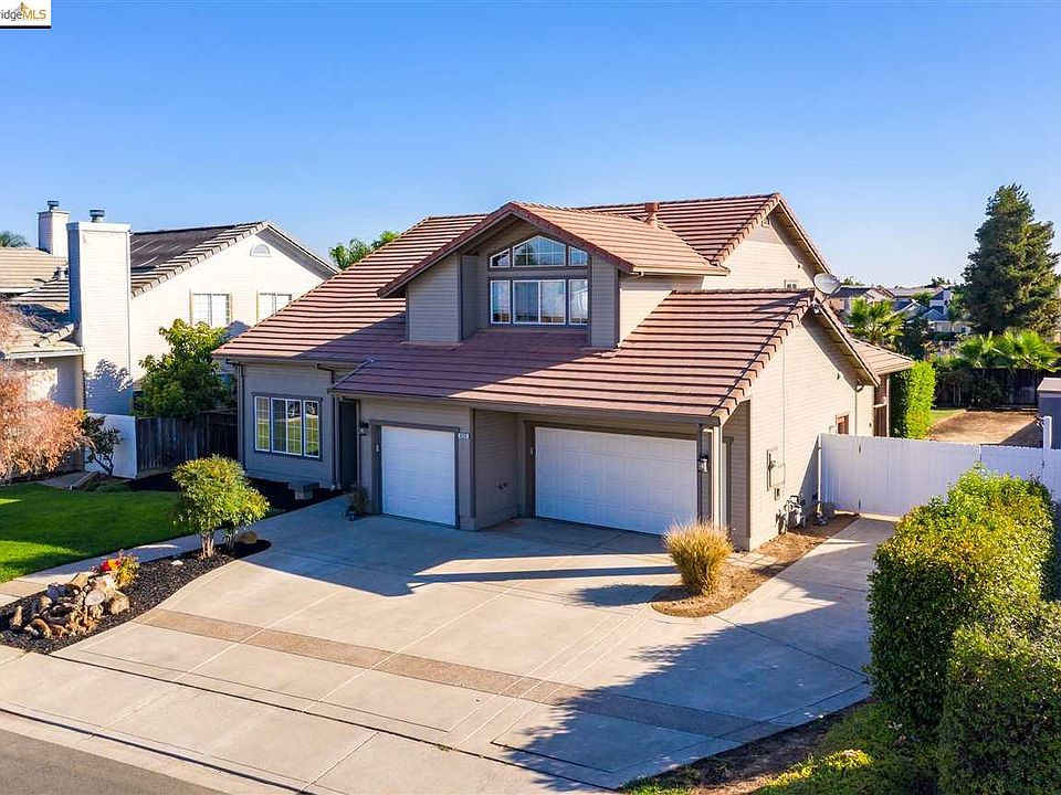 This semi-custom tract home is located in one of Oakley's most sought after neighborhoods. Enjoy room to roam with spacious formal living, dining, family room, and LOFT areas. Beautiful refinished hardwood floors throughout kitchen, dining, and entry. Large eat-in kitchen with built-in oven /microwave, gas cooktop, and breakfast bar adjacent to the family room. One Bedroom and full bathroom downstairs with Jack-n-Jill access. Huge master suite features large double sink vanity, stall shower, jetted tub, dual sided gas fireplace, his/her walk-in closets, and a laundry chute! Central vac system. Laundry Room has sink and cabinetry. 3 car garage with extended driveway and huge gated side access with room for RV/Boat, and more. Landscaped back yard and no rear neighbors!