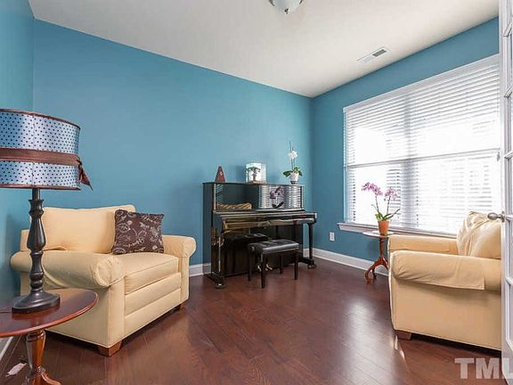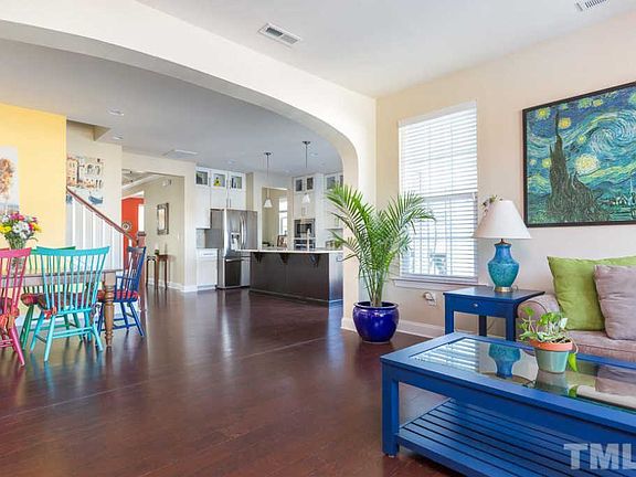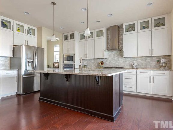 OPEN FLOOR PLAN ~4BR home in desirable West Cary neighborhood! 1st floor features hardwoods throughout, home office, designer kitchen, family room, & dining. Kitchen has stainless appliances, gorgeous white cabinets, upgraded granite countertops & tile backsplash, gas cooktop, stainless/glass range hood, huge island w/beadboard. 2nd floor has master suite w/luxury bath featuring tile floor & shower w/frameless door, 2 more bedrooms, & loft. 4th BR/bonus w/full bath on 3rd floor. Pool, gym, fitness center.