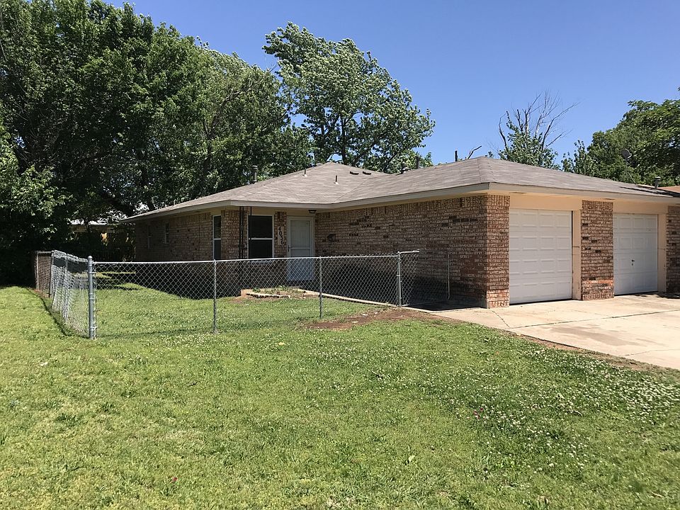 Located on the south side side on NE 10th between Douglas and Midwest Blvd. This duplex is the first one on the corner of 10th and Parkwoods. The look through from the kitchen to the living room helps it feel open! Ceram tile in kitchen and hardwood floors in the living room! Laundry area is inside, fully fenced yard, 1 car garage and easy to get to highways.