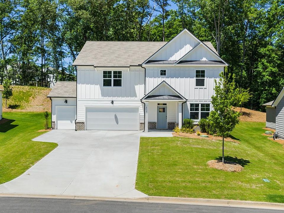 Boat slip included - Lake Lanier in Gainesville, GA could be your next home in our Falcon Landing community, as 4036 Peregrine Way is waiting for you! The lakeside location of this community gives residents the opportunity to enjoy the community dock and all Lake Lanier has to offer. Boasting 5 bedrooms and 3 bathrooms, including an attached gold cart garage, there's no question why the Halton is one of our best-selling plans. A spacious foyer leads you into the home, with access to the stairs, a hallway leading into the living room, and an entryway into the flex room at the front of the home. Through the flex room you'll enter a butler's pantry that acts as a pass-through - especially beneficial if the flex space is used as a dining room - and also provides access to the roomy walk-in pantry. The large kitchen feels boundless with a seamless flow into the attached dining area and adjacent living room. A stainless-steel appliance suite, oversized island, and bountiful counterspace make this kitchen a chef's dream. A covered back patio gives homeowners the chance to relax after a day on the lake. A bedroom and full bathroom round out the main living area. Upstairs you'll walk directly into an additional living area at the top of the stairs. To one side, you'll find three secondary bedrooms and a bathroom with double vanity, tiled flooring, and a linen closet. On the other side, the primary suite sprawls from the front of the home to the back, boasting a roomy bedroom with it's own spacious sitting area, two expansive walk-in closets, and a primary bathroom with double quartz vanity and separate soaking tub and tiled shower. An ample laundry room rounds out the second level. Call us at Falcon Landing today to learn more about 4036 Peregrine Way and what living at Lake Lanier is all about!