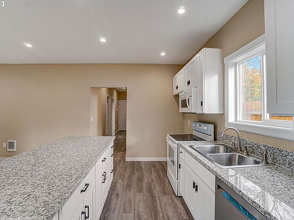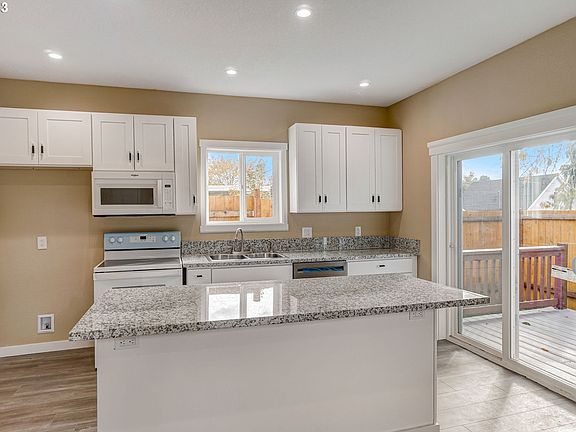 Completely rebuilt, brand new everything! Nine foot ceilings and dedicated laundry room makes the space live large! Recessed lighting in living/ kitchen, LVP flooring and a luxurious bathroom with two bedrooms. Perfect little home to put your stamp on! New lot line recorded with the city. Perfect starter close to the Pickles, transportation and highway access. Come put your stamp on this sweet little home! [Home Energy Score = 9. HES Report at https://rpt.greenbuildingregistry.com/hes/OR10223767]
