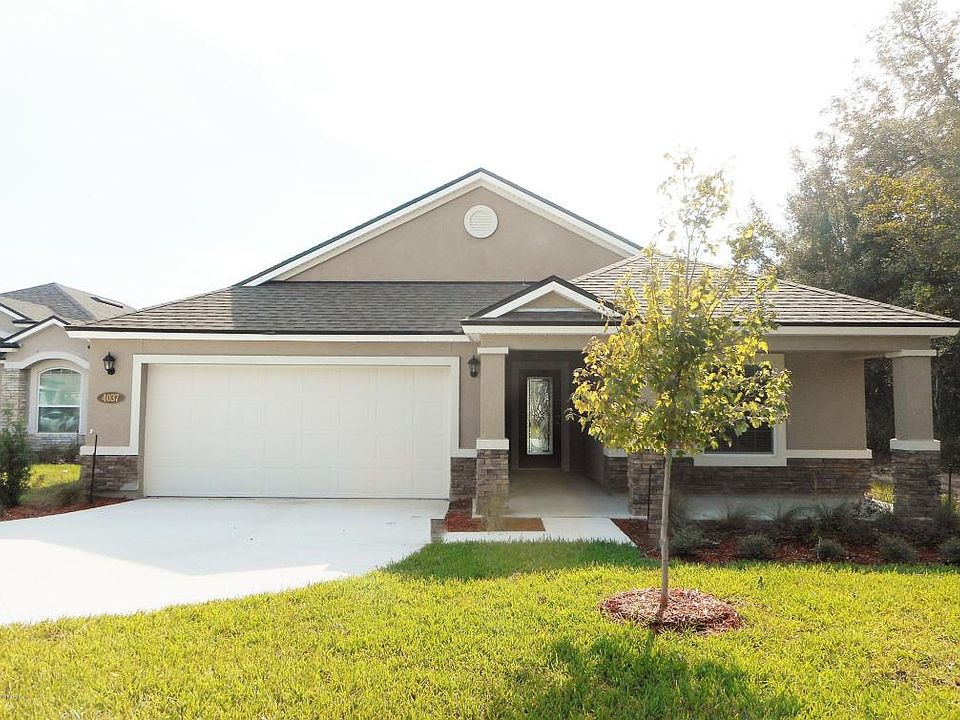 The Lantana floor plan in Cedarbrook features stucco and ledgestone front, granite counters, tile floors, pendant lights, rear covered patio, and stainless steel appliances. Cedarbrook is located in desirable northeast Jacksonville, convenient to I-295 and I-95, the River City Marketplace, downtown and the Jacksonville International Airport. Home sites include lake view and preservation areas. A rated school, New Berlin Elementary School, William F. Sheffield Park and Pumpkin Hill Creek Preserve are all nearby the Cedarbrook community.