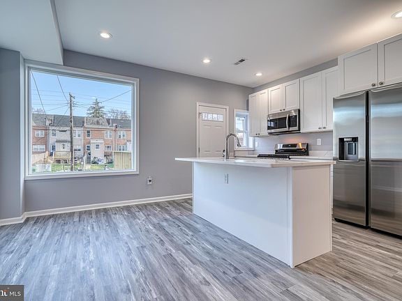 This totally renovated porch front home has the perfect blend of modern elegance and classic charm. The open layout showcases separate living and dining areas, flooded with natural light and recessed lighting. The stylish kitchen features white cabinets, stainless appliances, table space and a breakfast bar, while the fenced rear yard, along with a rear deck, offer plenty of outdoor space. With 4 bedrooms, 3 full bathrooms, and a finished basement providing additional living space, this beautiful home caters to every need, promising a lifestyle of comfort and sophistication